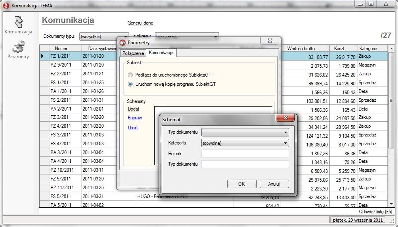 Parametry programu pozwalają na zdefiniowanie schematów księgowania dokumentów.